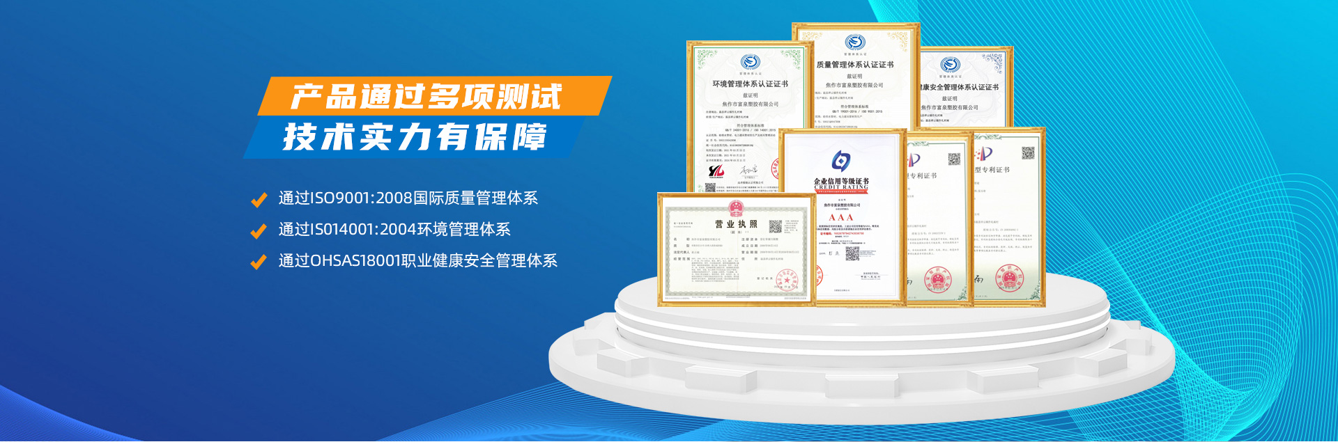 - 焦作市富泉塑胶有限公司,创立于1995年,是一家集研发、设计、生产、销售为一体的大型管材企业。公司位于太极故里、黄河之滨一一河南焦作温县。公司占地128亩,现有职工210余人,其中具有中技术职称的19人。生产、检验设备58台(套),包括PVC实壁管生产线11套、PE实壁管生产线12套、HDPE双壁波纹管生产线6套、PVC双壁波纹管生产线5套,检验设备14台(套)。主要产品有:Φ20mm-630mm、各种压力规格的PVCU、PVC-M、PE给水管材,PVC-U节水灌溉管材,HDPE燃气和矿用管材,DN200-800mm的HDPE、PVC双壁波纹管及各种喷灌、滴灌工程材料。承接大中型市政供排水、饮水安全及节水灌溉等工程?! 「蝗芙汗局厥硬返闹柿俊踩?、环保和节能,在同行业中率先完成了“新华节水产品认证”,全方面通过ISO9001:2008国际质量管理体系、IS014001:2004环境管理体系和OHSAS18001职业健康安全管理体系的一体化导入,并建立起规范的现代企业管理体系。公司以“质量”为先导,采用质量跟踪、多环节把关的方法,组建具有行业水准的企业技术检测中心,常年委托水利部节水灌溉设备检测中心、河南省产品质量监督检验院对产品跟踪检测,并由中国人民保险公司承保产品质量。公司连续多年被河南省水利厅确定为“安全饮水设备、节水灌溉设备”定点生产企业,并获得“中国名优产品”“质量、服务、信誉AAA企业”“河南省**产品”“河南省水利企业”“河南省守合同、重信用企业”等荣誉称号?! 「蝗芙汗炯岢帧坝没稀钡姆窭砟?,长期以来,全方面关注客户价值,不断提升服务水平。服务队伍常年为客户的产品设计、施工、安装提供合理的方案和全程细致、周到、**、快捷的技术服务。公司自成立以来,一直坚持以人为本的宗旨,塑造企业形象,并致力于新产品的开发,凭借雄厚的技术开发能力,先进的工艺制造流程,严格的质量管理保证体系,优良的售后服务网络,已成为河南省大的饮水、灌溉及排水管材设备制造商。产品畅销全国,而且还以公司雄厚的综合实力在业界中占据着重要的地位。